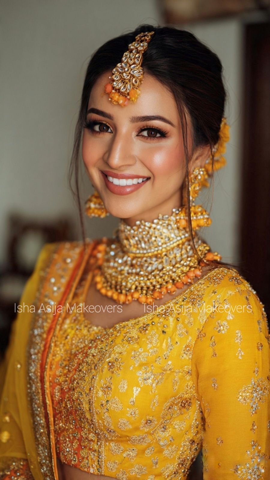 Our Haldi, Sangeet, Mehandi & Cocktail Makeup is designed to complement each celebration with the perfect look. From fresh, glowing makeup for Haldi and Mehandi to vibrant, expressive styles for Sangeet and elegant glam for Cocktail parties, we tailor every look to the occasion. Using premium, skin-friendly products, we ensure a lightweight, long-lasting finish that enhances your natural features. The makeup is customized to match your outfit, jewelry, and theme while keeping comfort in mind. With expert techniques and attention to detail, we help you look radiant, confident, and camera-ready throughout every pre-wedding celebration.